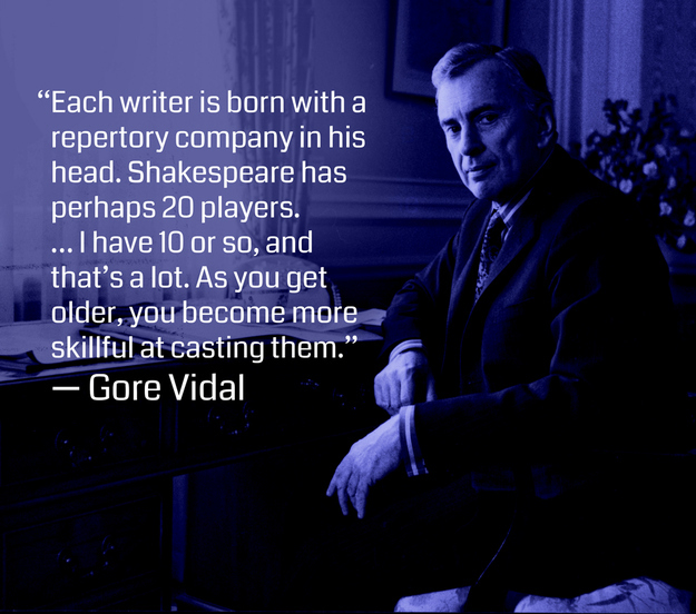 Quote Each writier is born with . . . Each writer is born with a repertory company in his head. Shakespeare has perhaps 20 players. . . . I have 10 or so, and that’s a lot. As you get older, you become more skillful at casting them. Gore Vidal. -33.327069 115.639174 Bunbury WA 6230, Australia Share this:TweetShare on Tumblr Click to email a link to a friend (Opens in new window) Email Click to share on goodreads (Opens in new window) goodreads Click to share on Telegram (Opens in new window) Telegram More Click to print (Opens in new window) Print Pocket Click to share on Reddit (Opens in new window) Reddit Like Loading... Related
